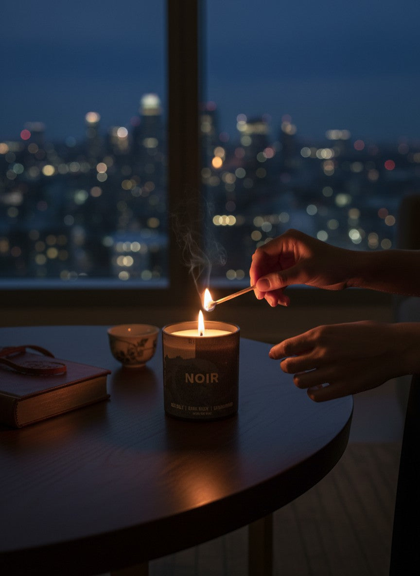 A study in shadows and depth. The Noir Suite explores the intersection of dark botanicals and industrial smoke, designed for environments that require gravity.